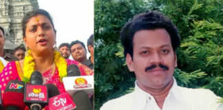 మెడలో మంగళ మాలికతో, చేతిలో పురాణపండ శ్రీమాలికతో యాదాద్రిలో మంత్రి రోజా